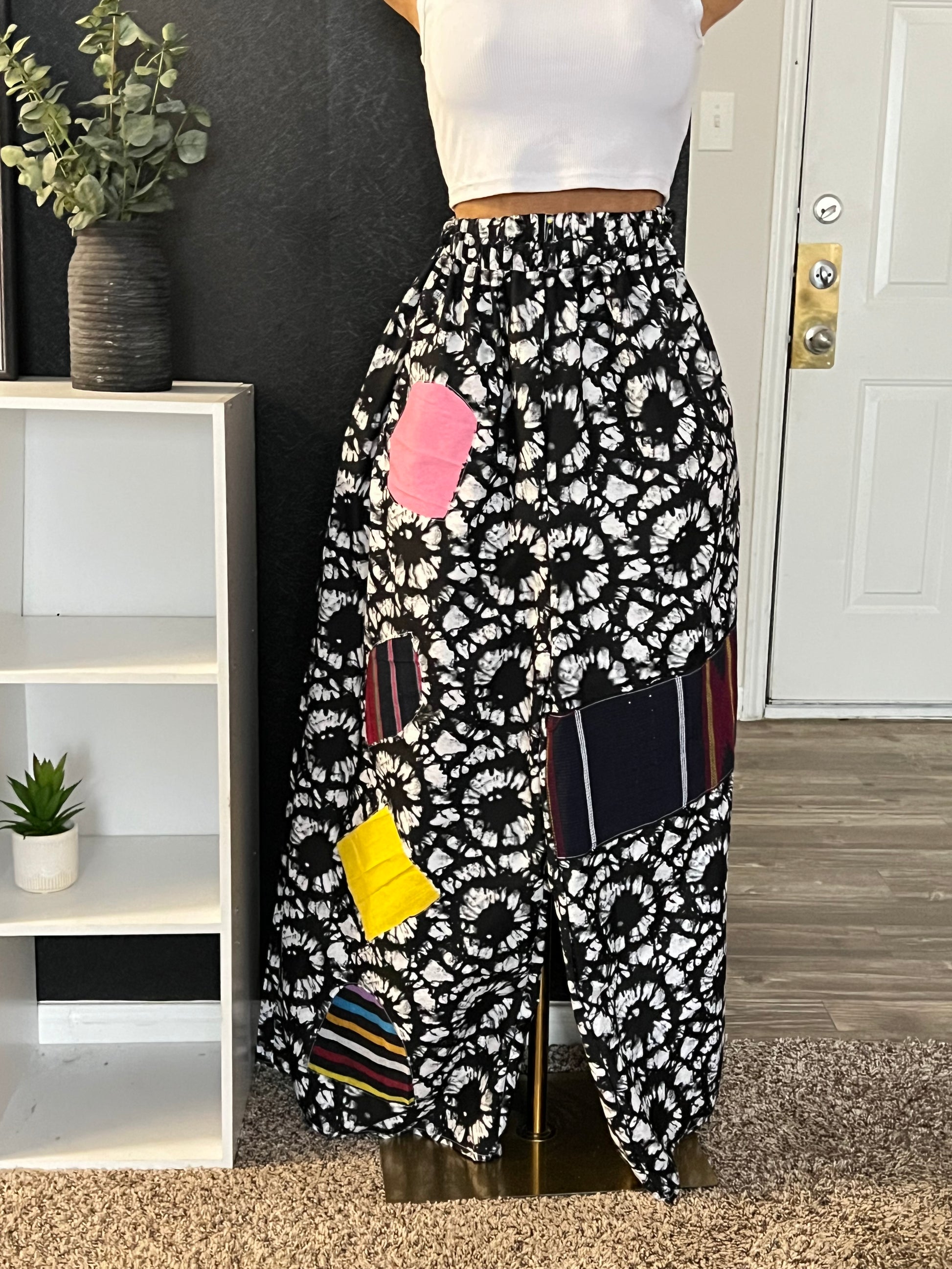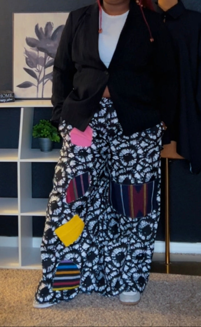 Elevate your wardrobe with the Iremide wide-leg pant, a contemporary celebration of African heritage. Crafted from vibrant Ankara print fabric accented with authentic Aso-oke patches, this statement piece seamlessly blends traditional artistry with modern silhouette. The relaxed wide-leg cut offers comfort and movement, while dual side pockets provide practical functionality. Perfect for women seeking bold, culturally inspired fashion that commands attention and honors African textile traditions.